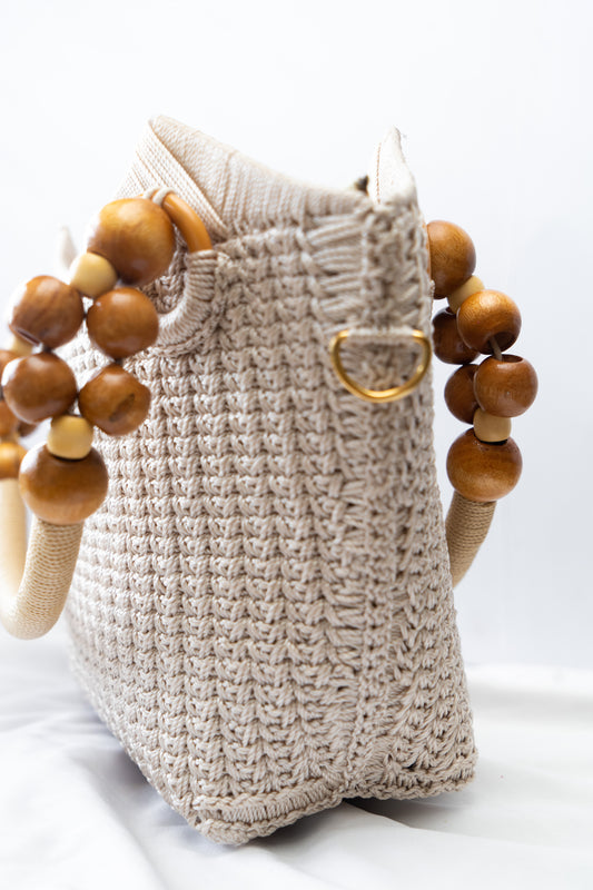 BEIGE CROTCHET TOTE BAG