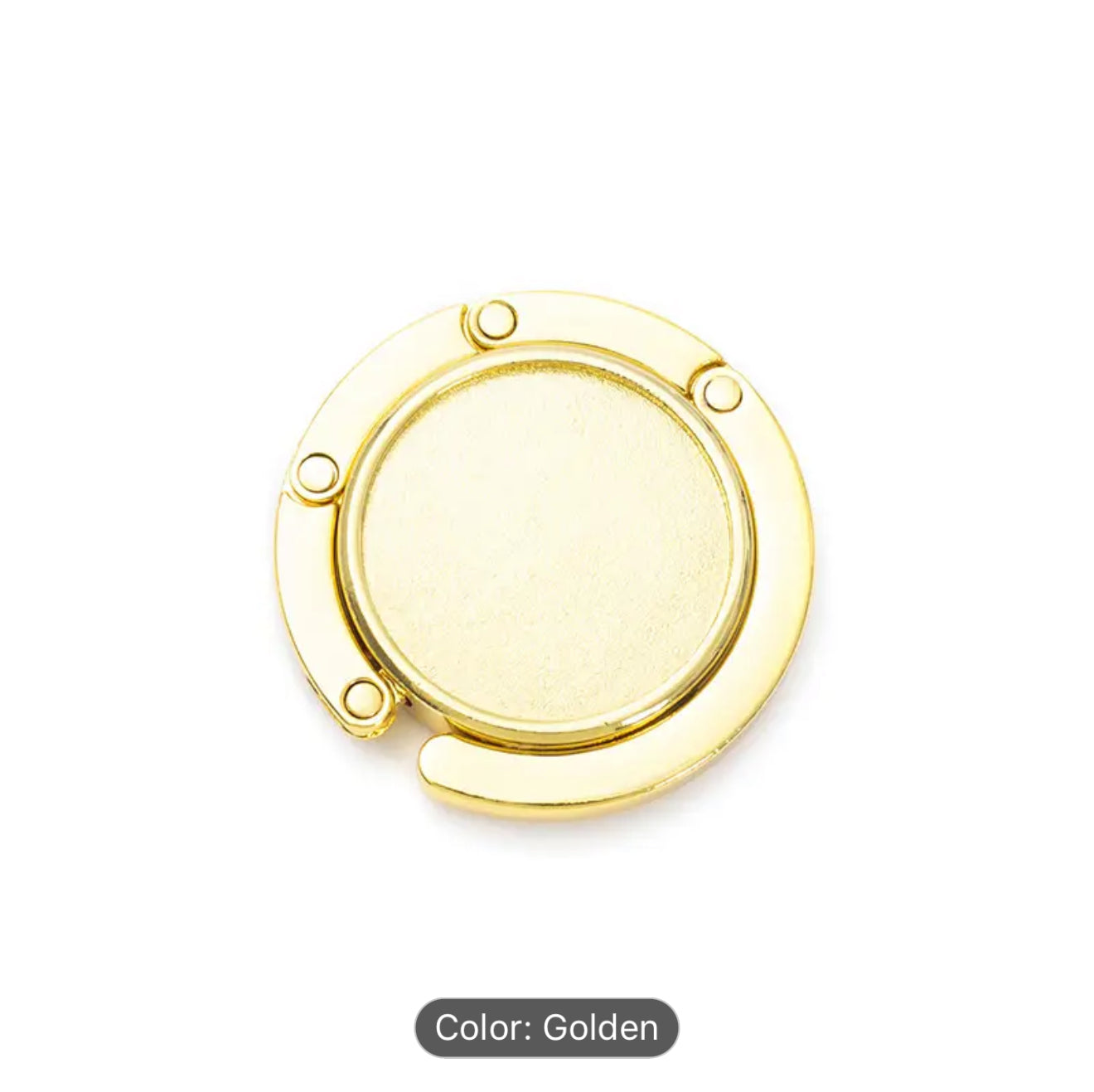 This elegant accessory features a circular inlay, handcrafted, Lightweight and petite, this stylish piece fits effortlessly into your bag to use everywhere from the office to the bar, ensuring your belongings are off the floor and close to hand.